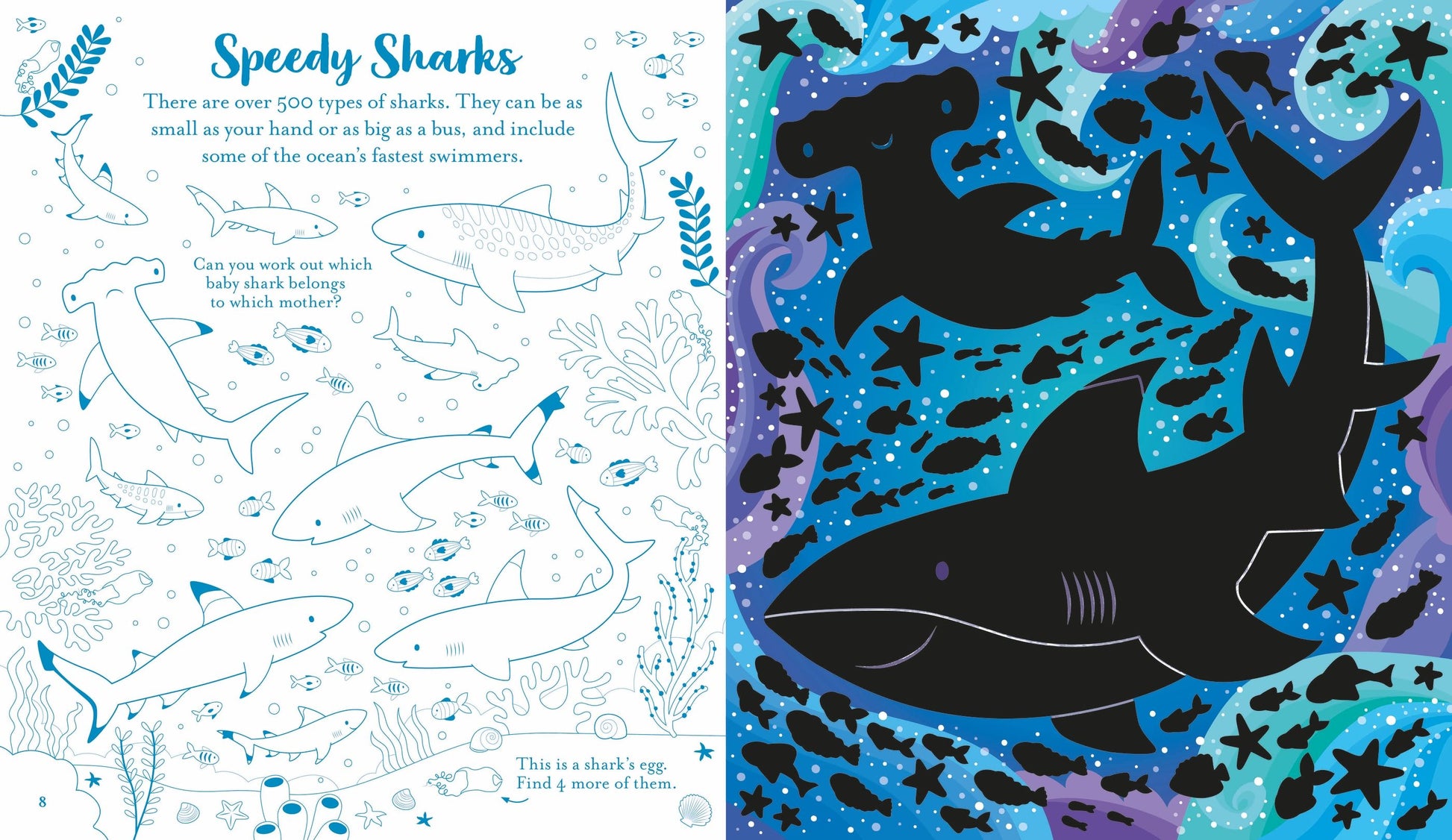 Dit krasactiviteitboek is gevuld met geweldige zeedieren en uitnodigende plekken om te krassen.