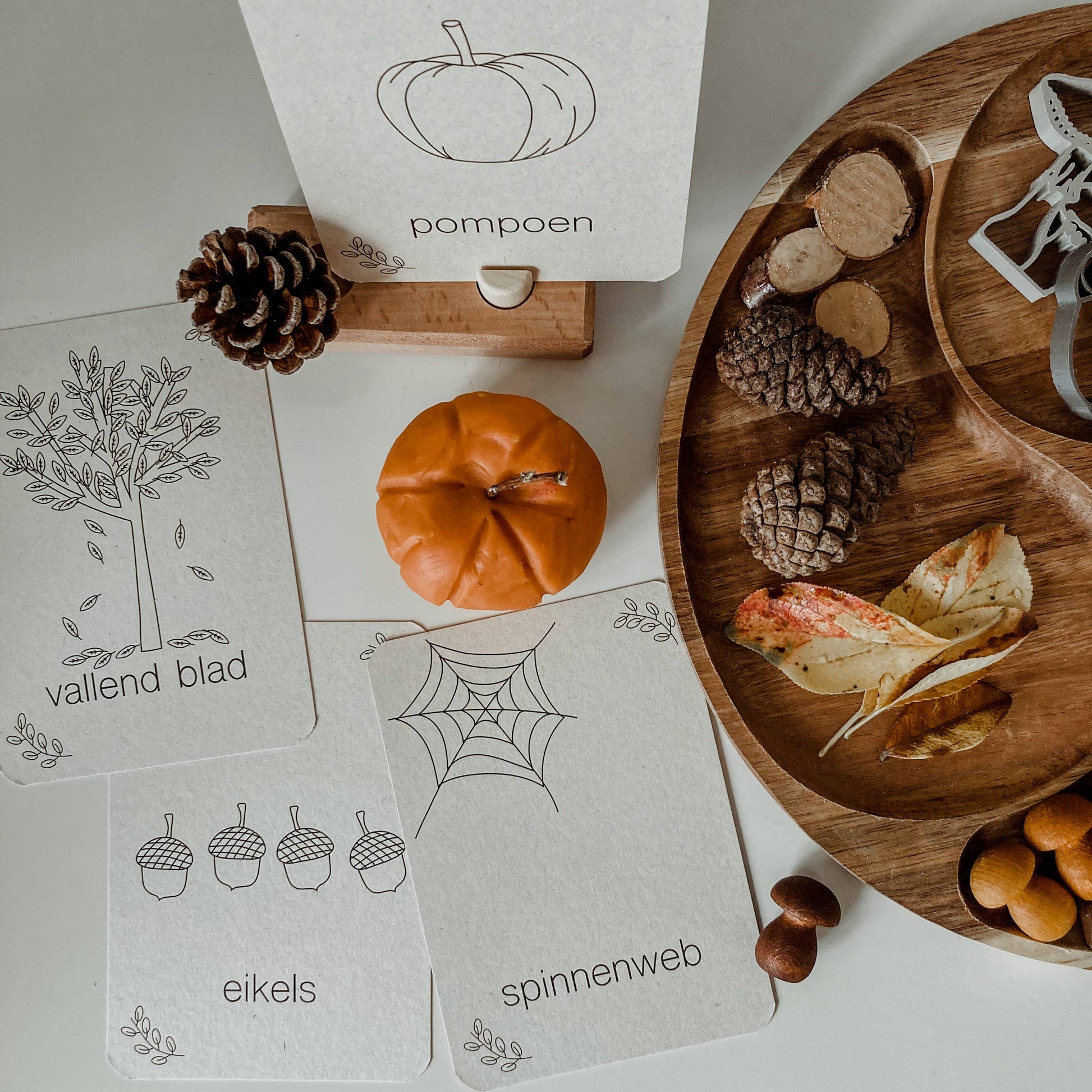 The autumn flashcards have a beautiful look because they are printed on sturdy 295 gram PaperWise paper made from recycled agricultural waste. Because of its simplicity, children are not distracted or driven by bright colors.