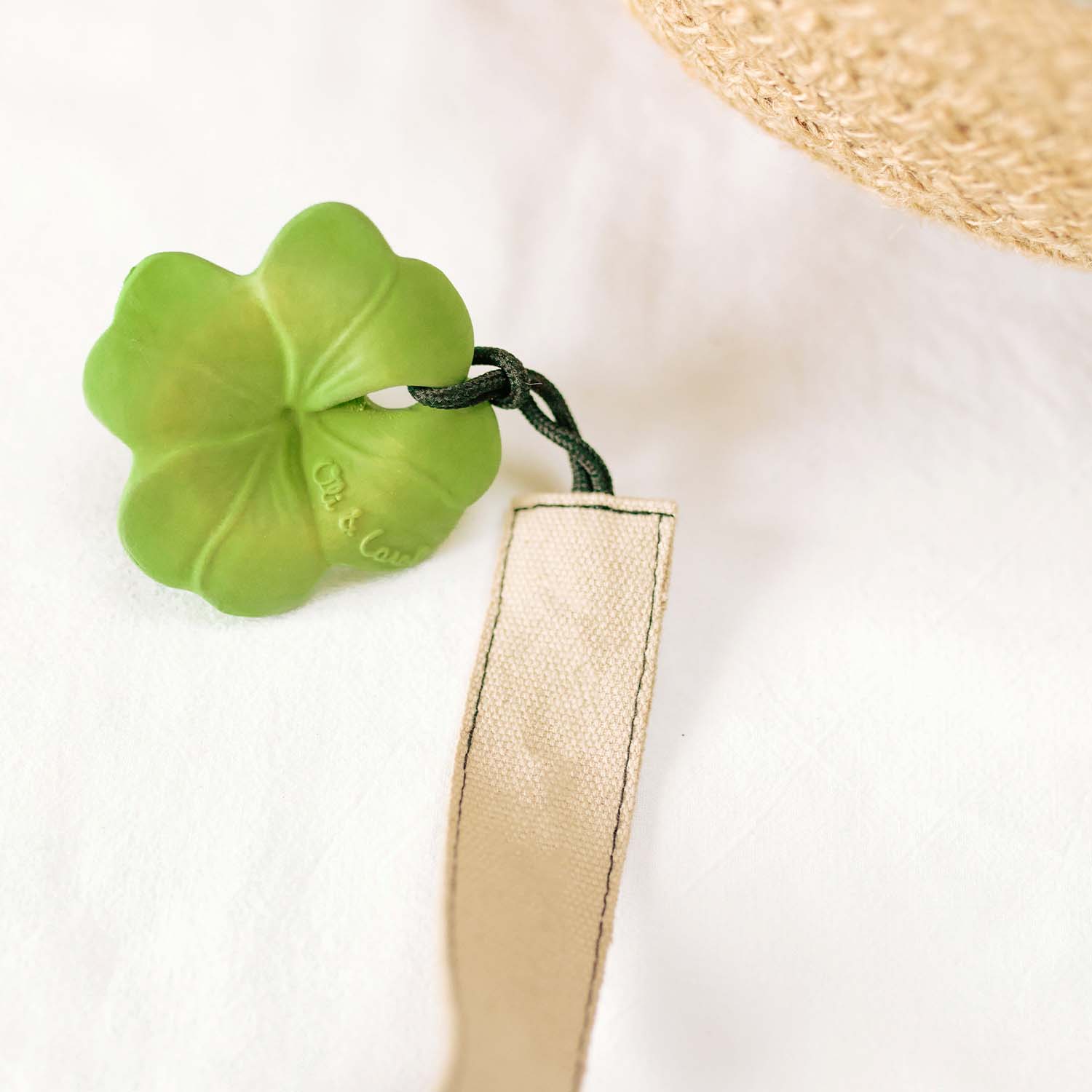 This baby teether is solidary. Its design in the shape of a clover is an icon of good health & luck. For every purchase we are contributing with Fundación Luzón to support ALS research.