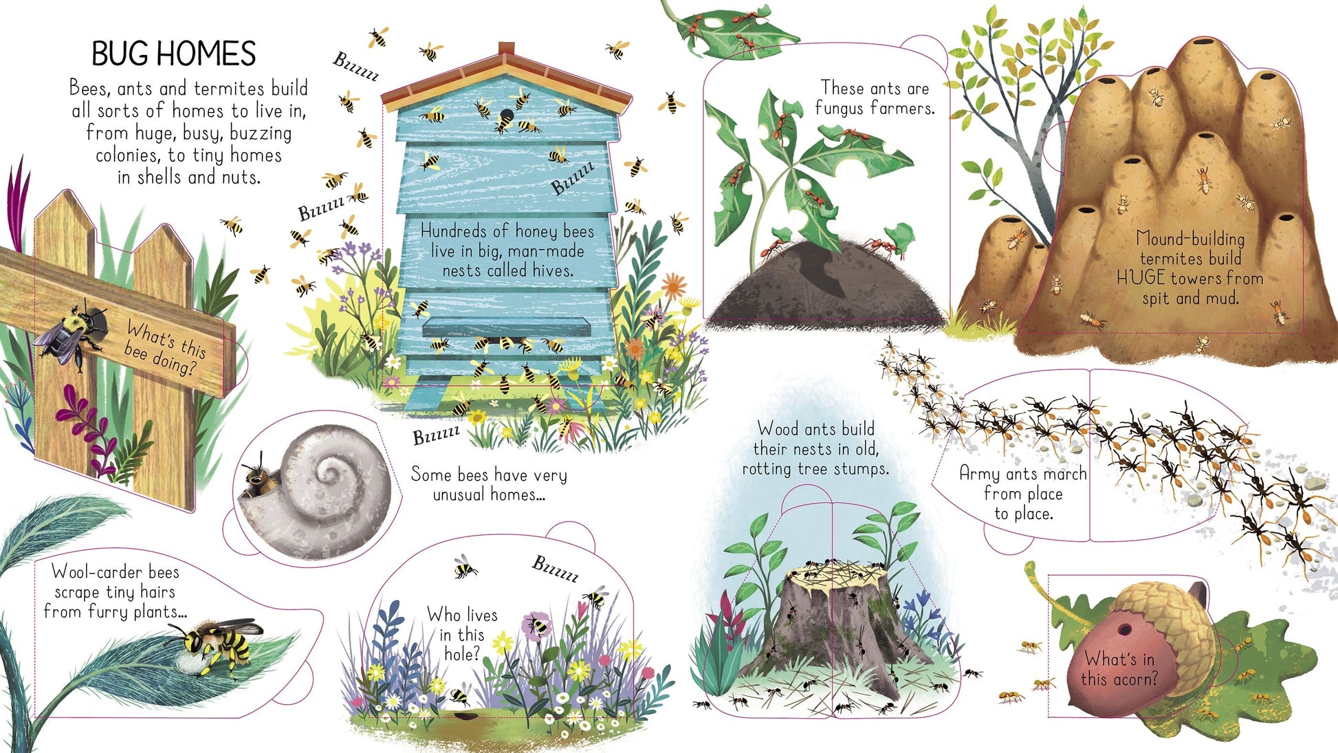 From nests in treetops to dark underground burrows, there are lots of animal homes to discover in this fascinating book. Lift the flaps to see how animals build homes in extreme temperatures, shelter in a warm coral reef, or on a riverbank and lots more. With over 80 flaps to lift and links to websites with videos and pictures of real animal homes.