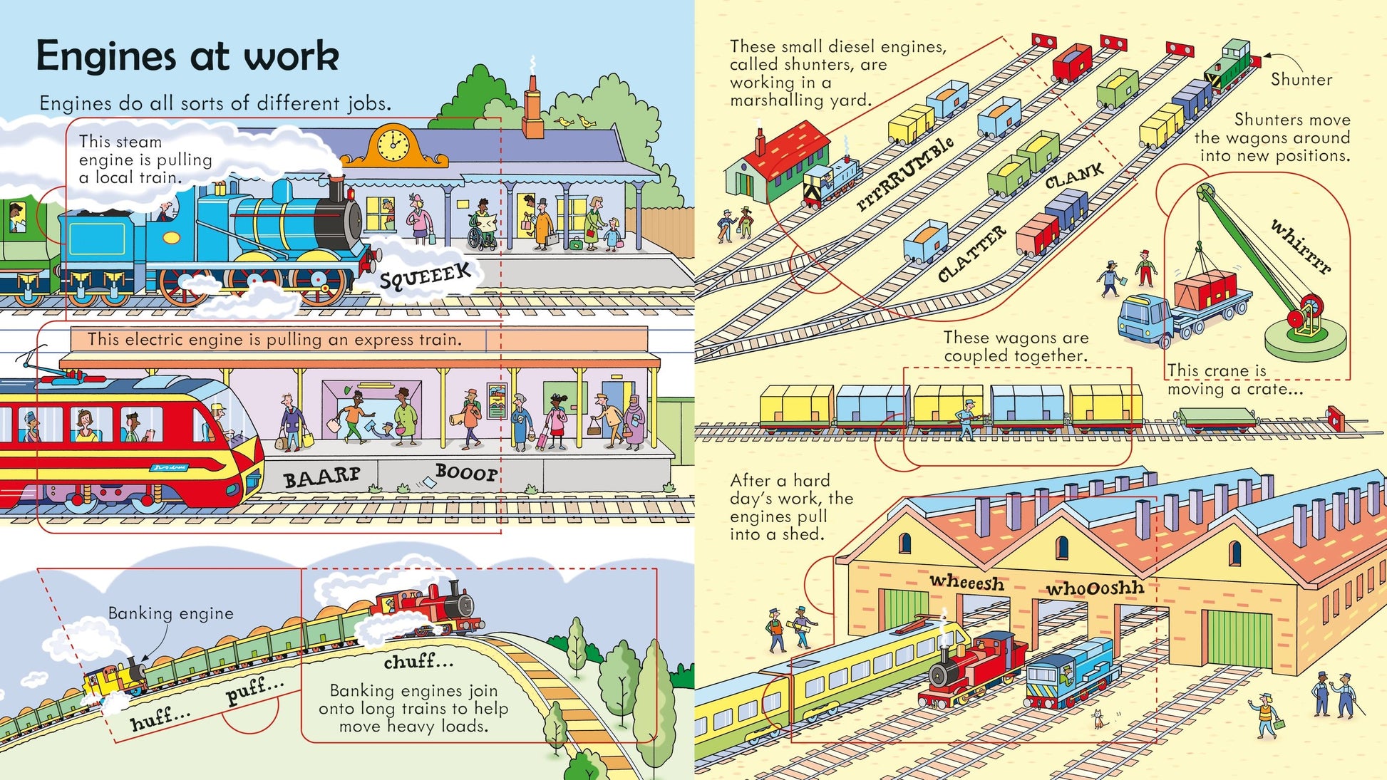 Toot! Toot! The old steam train whistles. Whoosh! Whoosh! The high-speed train zooms. Lift the flaps to find out how trains work, what they do, and where in the world they go.