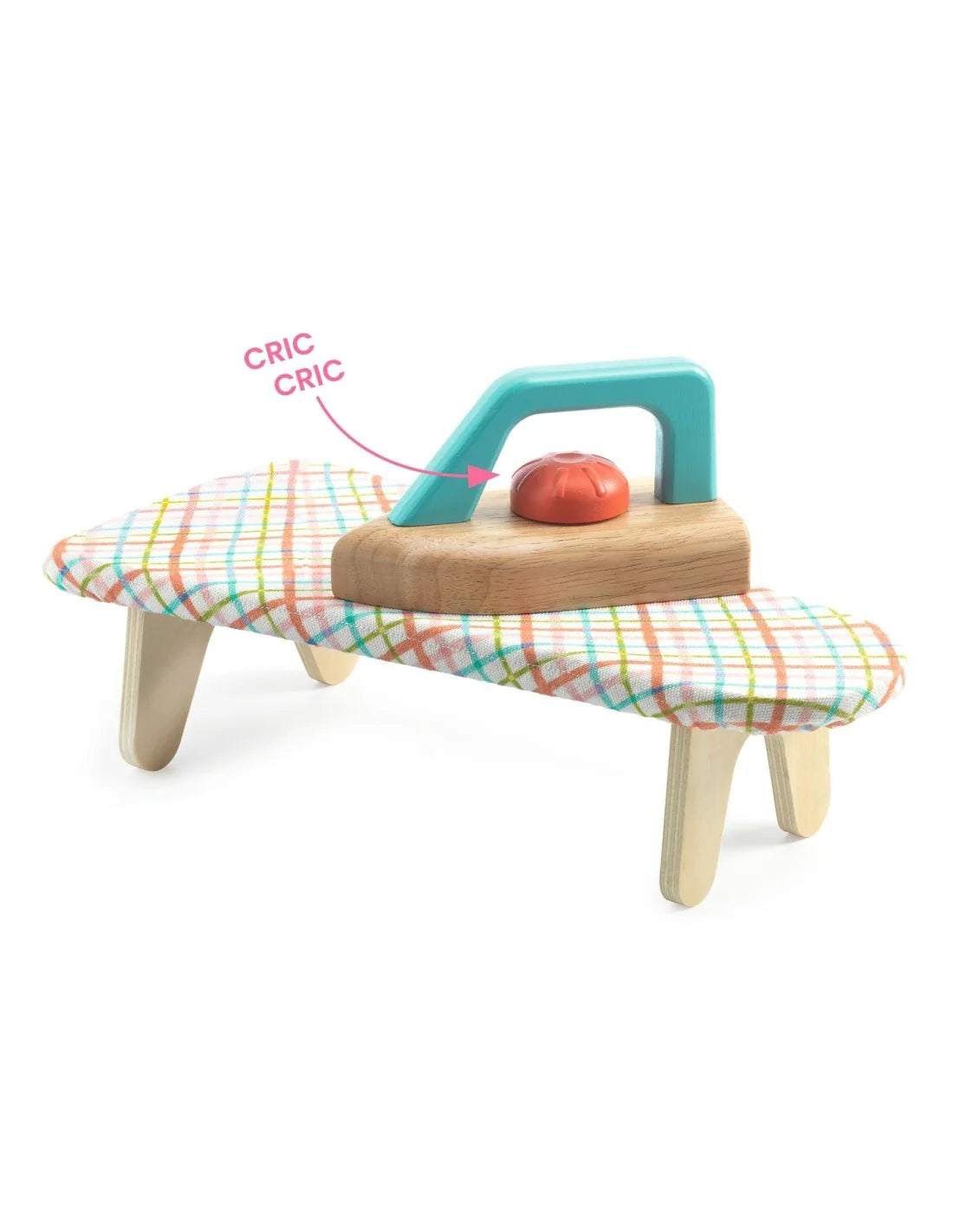The child adjusts the iron’s temperature by turning the dial. Then they choose one of the five clothing items to place on the ironing board. As they “iron” the garment, the wrinkles magically disappear—pure magic! They just need to repeat these steps for the remaining clothes.