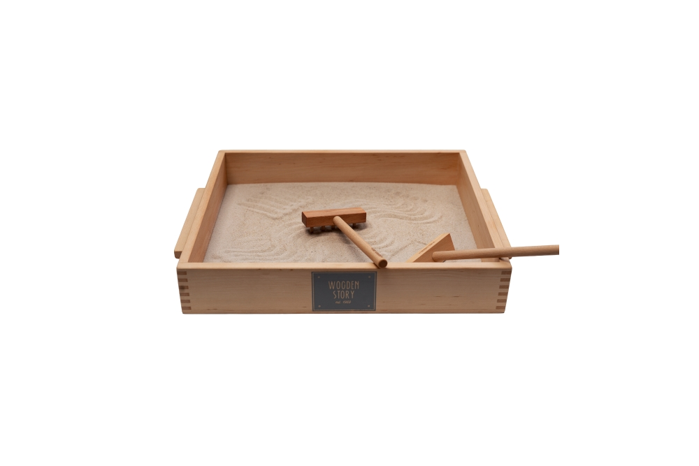 Wooden rakes with pins and scrapers dedicated to Wooden Sand Tray. Packed in a cotton, ecological case that can be used as a cover or a pencil case.