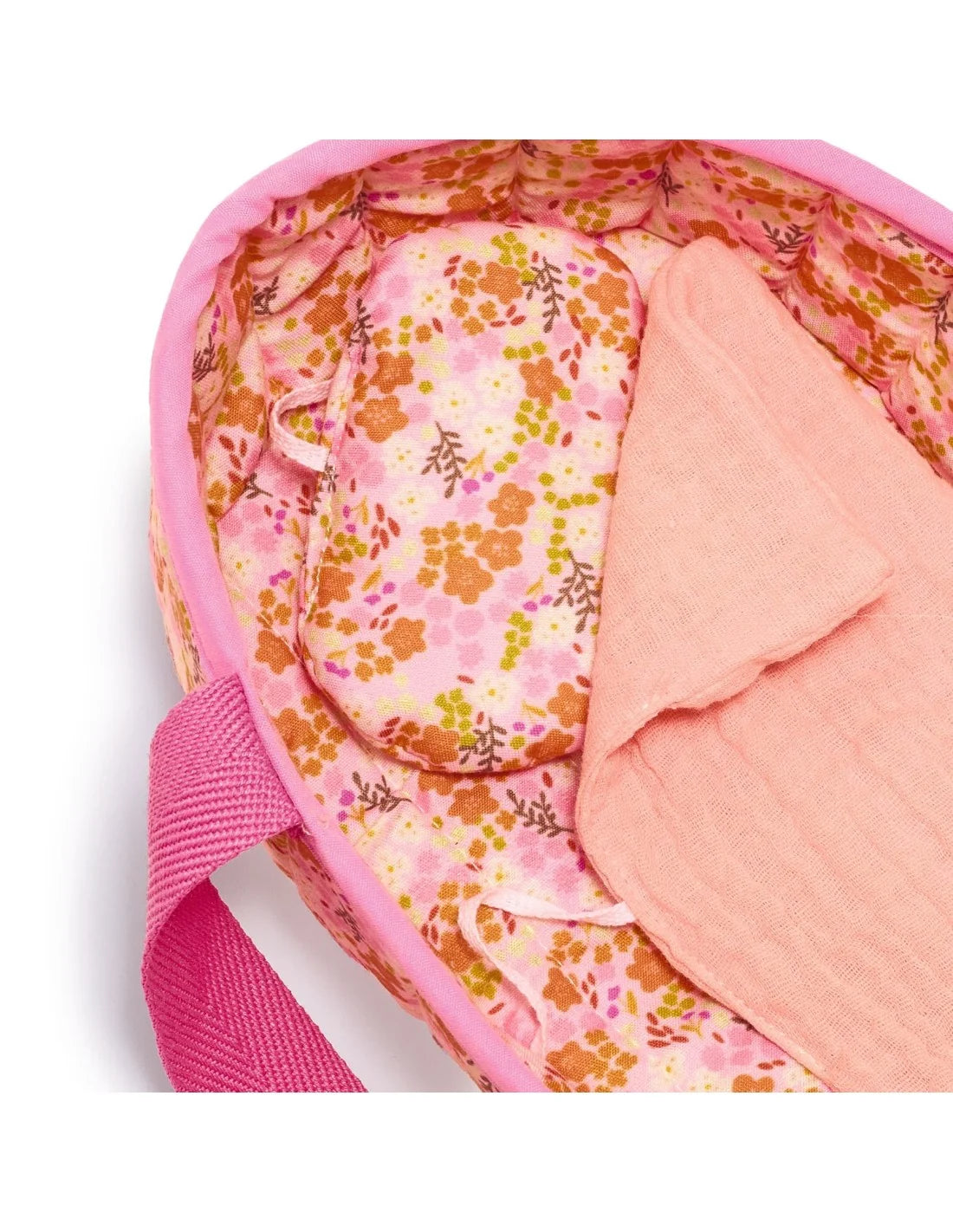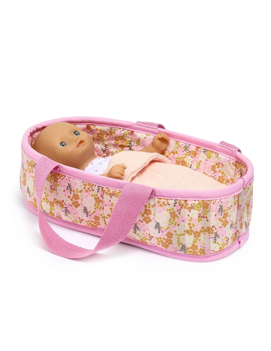 Barbara is a charming 20 cm baby doll with smiling eyes. Her soft and flexible body has a printed pyjama. She lies comfortably in her adorable padded cradle with an elegant pattern and will quickly become the perfect little friend for children to cuddle and care for, wherever they take her.