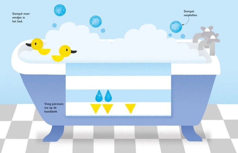Inclusief veilig inktkussen met heldere kleuren inkt en zes vormenstempels. Met duidelijke instructies om de fantasievolle tekeningen verder af te werken en de blanco ruimte op te vullen met de stempels.
